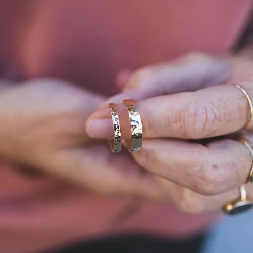 Mam zarówno klasyczne, maksymalnie minimalistyczne obrączki prostokątne lub zaokrąglane, jak również nowoczesne obrączki młotkowane. Miłośnicy detali oraz fani kamieni szlachetnych na pewno zwrócą uwagę na obrączki z kamieniami. Jednak prawdziwym bestsellerem i hitem są obrączki ślubne na zamówienie „Linie czasu”. Umieszczone na nich daty, inicjały, symbole to Wasz osobisty język miłości!