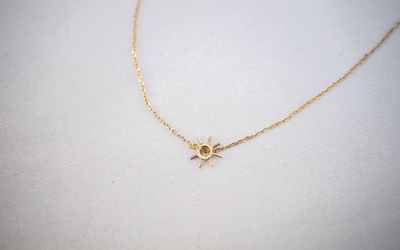 Małe słoneczko z ośmioma promieniami jest siostrzanym modelem słoneczka No.7. Najlepiej prezentuje się ono na łańcuszku klasycznym 45-centymetrowym. Jeśli ten wzór przypadł Ci do gustu, mam dobre wieści! Kolczyki o tym samym wzorze wspaniale dopełnią kompozycję.
